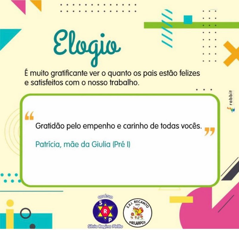 Nosso Colégio oferece aos nossos alunos e Pais um atendimento de qualidade, envolvendo muito amor, dedicação, transparência e um ambiente totalmente acolhedor. Trabalhamos com um olhar diferenciado a cada aluninho, respeitando a individualidade de cada um e sua própria história de vida. Os cuidados, o afeto a transparência na comunicação e a proximidade com os Pais e familiares associados a experiência desde 1982 no segmento da educação nos faz conquistar este diferencial.